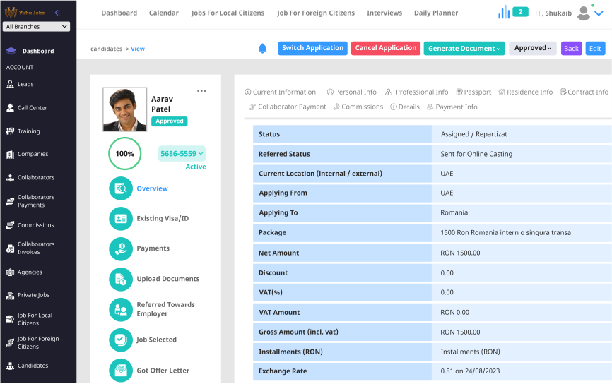 Services of offer letter preparation, work permit issuance, and visa updates will be provided to you with capabilities of performing all needed uploads and downloads of documents