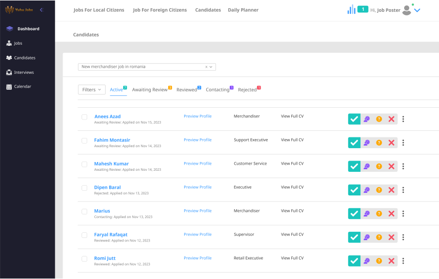All foreign and local jobs are accessable through the platform with search capabilities and filters that returns full details for all jobs